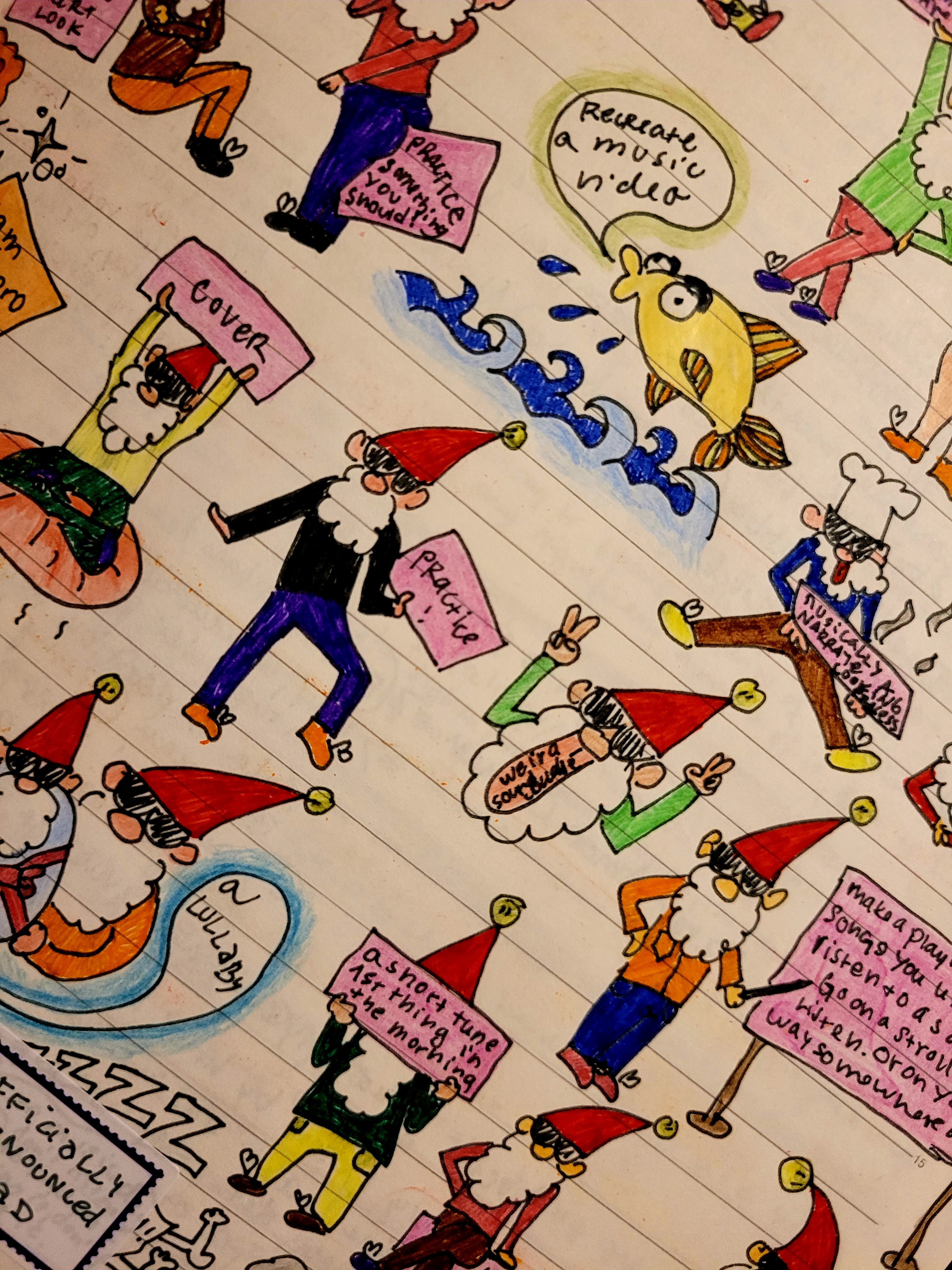I drew 30 gnomes like that. I gave each one a sign in their hands, that told me what to do each day.